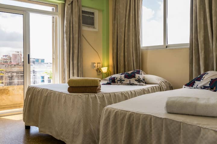 - Balcón con vista a la ciudad, donde podrás disfrutar de la vida cotidiana de Centro Habana.